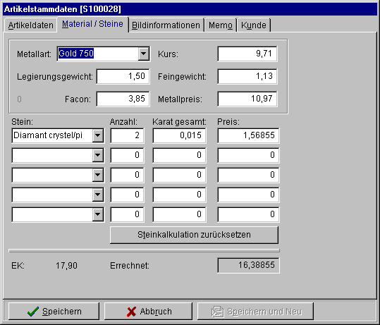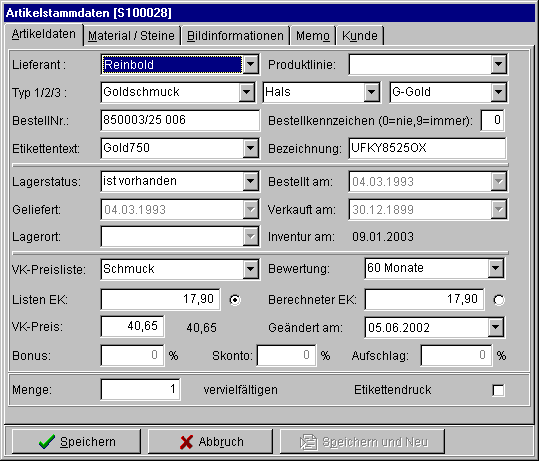 Die Daten werden direkt dem Artikel zugeordnet, so dass sie auch