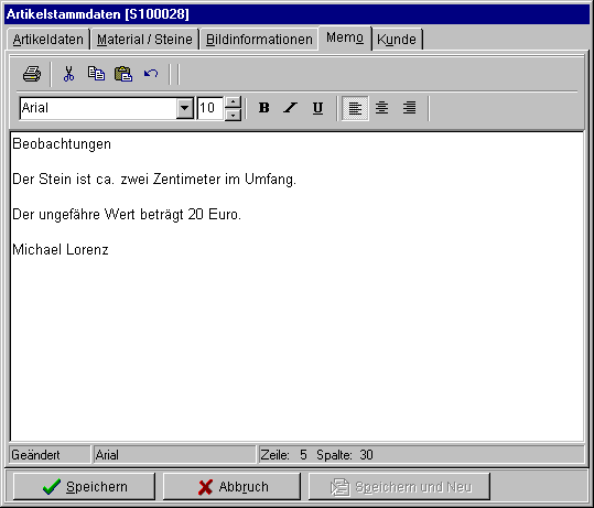 In der Ansicht links können Sie Kundeninformationen zum Artikel
