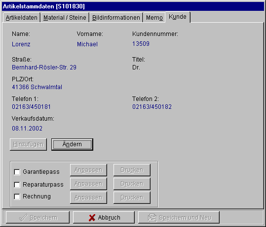 Durch Zuordnung eines vorhandenen Artikels zu einem Kunden, wird der Artikel