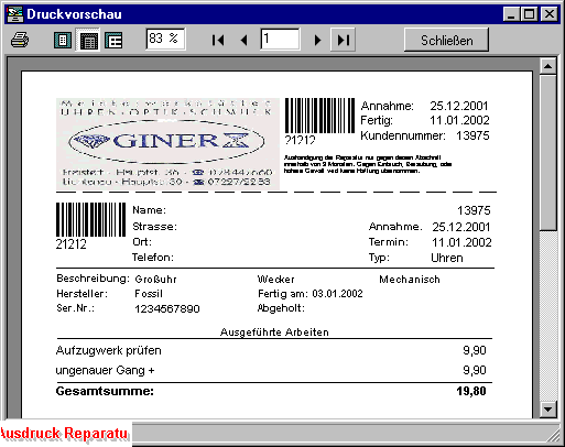 ebensowenig ein Problem wie die Unterstützung von Barcodes, damit die Reparaturen